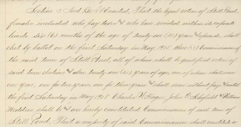 The small town of Still Pond in Kent County is credited with being home of Maryland’s first women voters. The town charter of 1908 allowed for women to vote in municipal elections. Fourteen women registered to vote, but only three voted in the first election; Mary Jane Howard, Anna Baker Maxwell, and Eliza “Lillie” Deringer Kelley. As they waited to cast their ballots, the women were repeatedly approached by men who believed they lacked the understanding required to vote, but the women refused to allow any man to write a ticket on their behalf. According to the Kent News, “they refused to be influenced.”